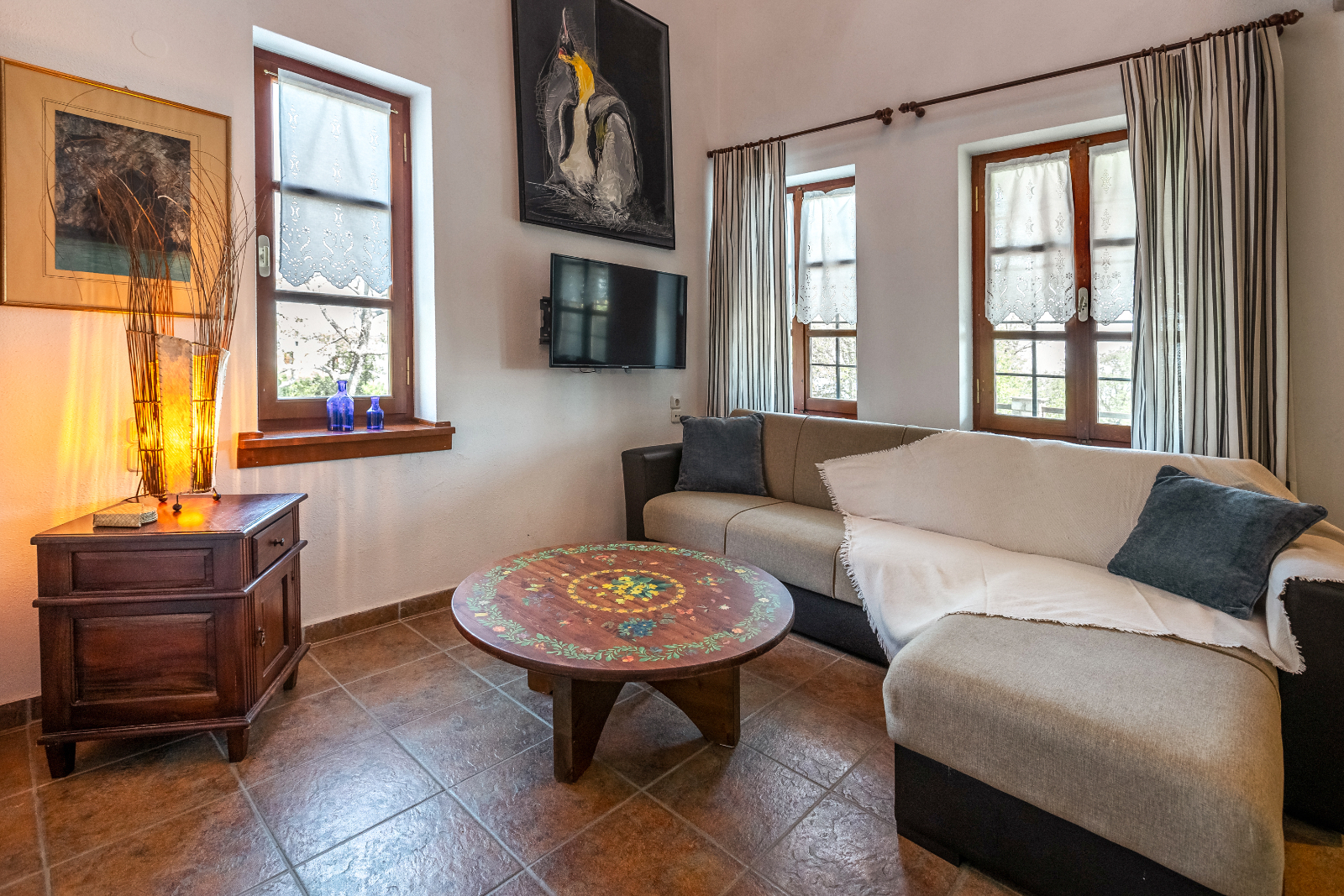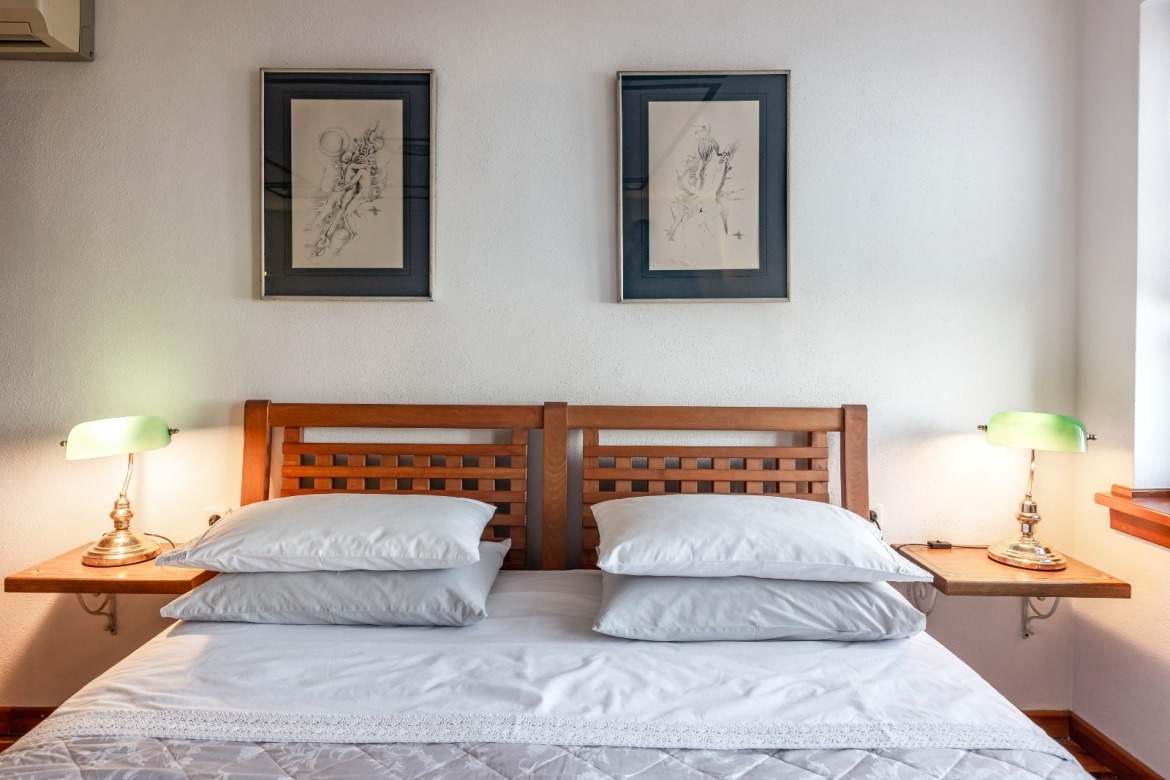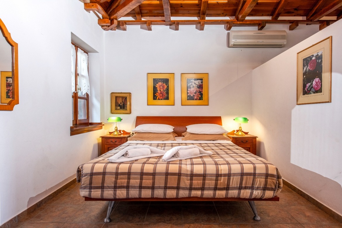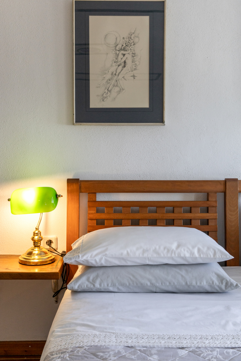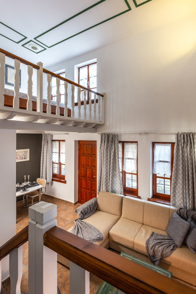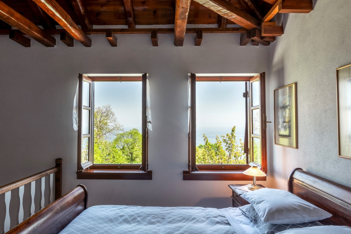 with its beautiful fireplace covered with Pelion slates, its wooden ceiling and wood-carved works of art (by the artist Chronis) will make you feel at home, like you are living in a traditional Pelion house, with the hospitable people of Gardenia around you. Studio:6 offers many facilities such as a bathroom, a hairdryer, an air-conditioning system, a TV, a Wi-Fi and a fully-equipped kitchen. The wooden bed matches nicely with the wood-carved paintings, bringing a feeling of warmth and hospitality to the room.
